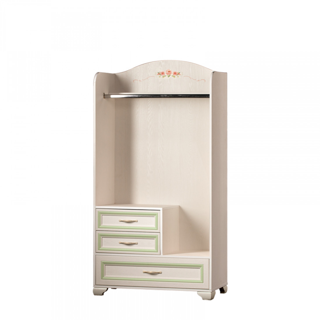 Современный рамочный фасад с мягкой патиной цвета мяты гармонично вписывается в интерьер детской комнаты