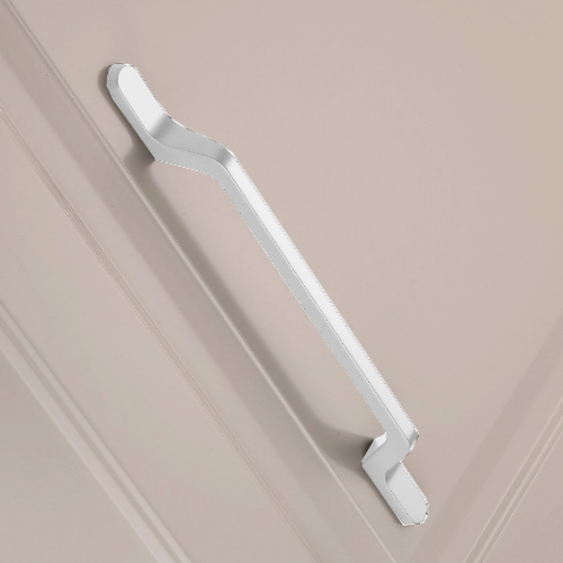 Шкаф двухдверный выполнен из ЛДСП цвета Капучино и имеет 2 вместительных полки в верхней части шкафа, 4 полки в правой части, и штангу для одежды на плечиках - в левой. Ручки в форме скобы выполнены из белого матового металла. Все петли - плавного закрывания