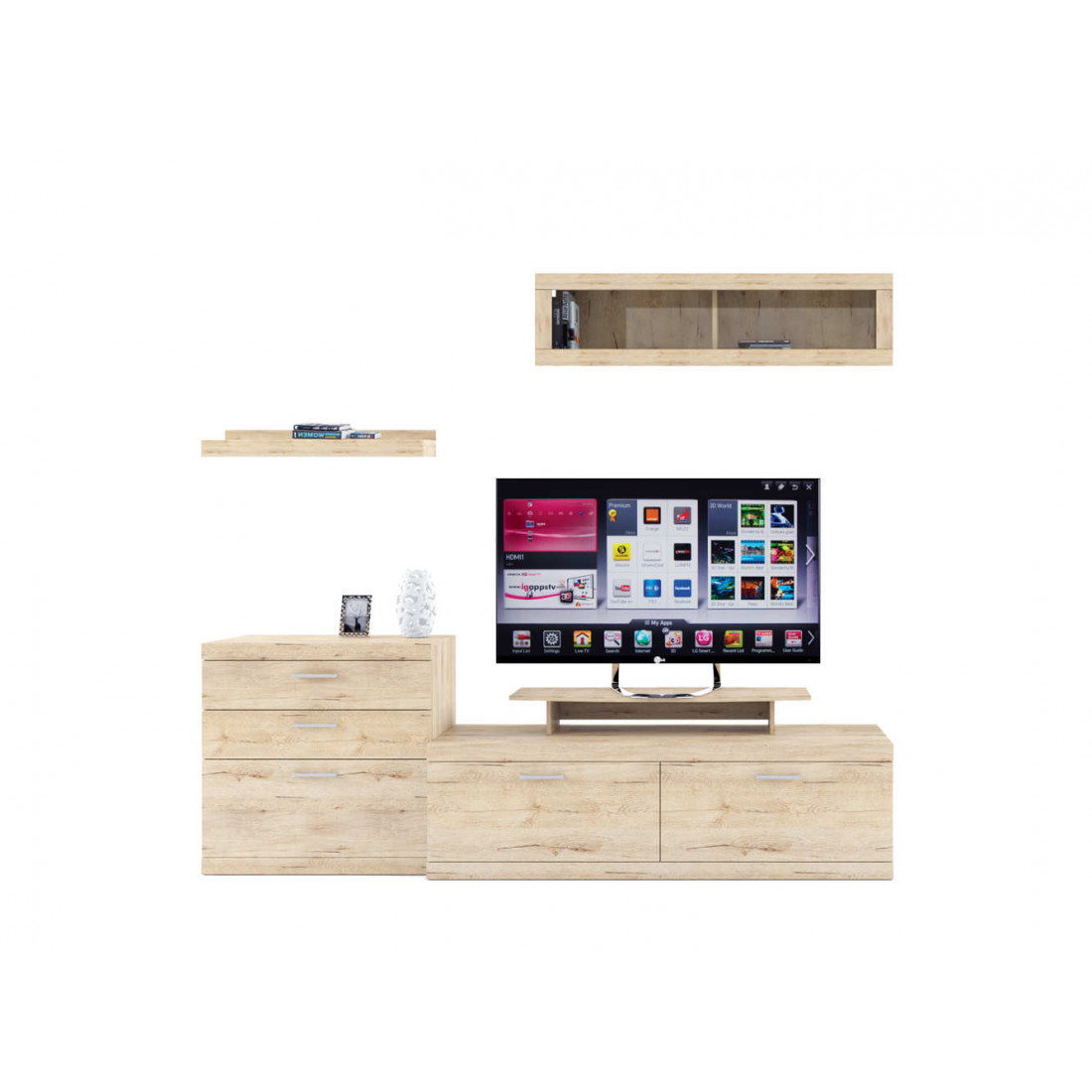 - 4 варианта тумб RTV с выдвижными ящиками на шариковых направляющих. 2 размера надставных полок для RTV-тумб (полка TVB и полка TV), позволяющих установить выше телевизор. Варианты навесных полок, соответствующих по размеру тумбам для телевизора. Тумба RTV 2S2NL имеет глубину 351 мм, что позволяет составить модули, имеющие такую же глубину, в одну линию без выступающих элементов.