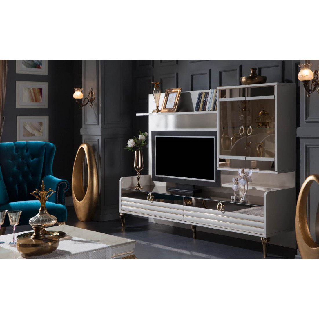 Шкаф с витриной 2V2D1S Н VALENCIA (Валенсия)