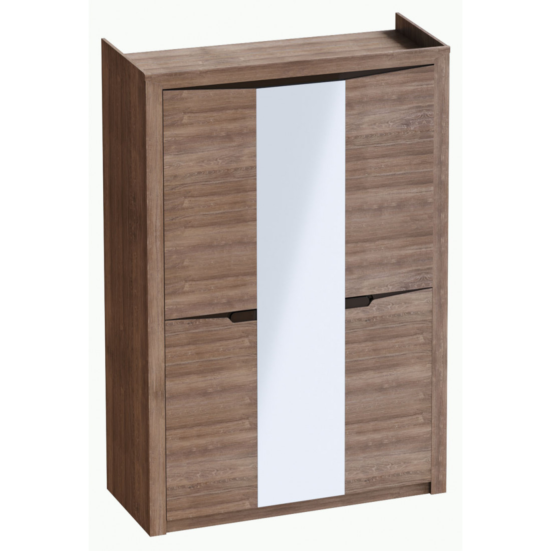 Трехдверный шкаф для одежды из коллекции Соренто Дуб стирлинг порадует ценителей лаконичных форм своими простыми, современными линиями и приятной светлой деревянной текстурой, создающей чувство покоя и комфорта в вашем доме. Встроенное зеркало - утилитарное решение для удобного подбора гардероба, к тому же, оно визуально расширит пространство.