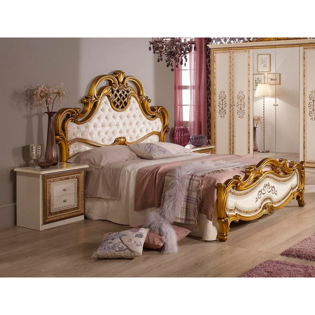 Спальня Анита (беж) композиция 2 от Российской фабрики "ДИА мебель". Выполнена в бежевом цвете с отделкой золотых фасадов. Такой дизайн поможет Вам расслабиться после рабочего дня и насладиться прекрасной атмосферой. Классический стиль придают интерьеру неповторимую роскошь. Изгибающие линии кровати и зеркала придадут легкость и воздушность в спальне. Коллекция "Анита" придаст вашей спальне экстравагантность, и принесет свежие нотки в Ваш дом.