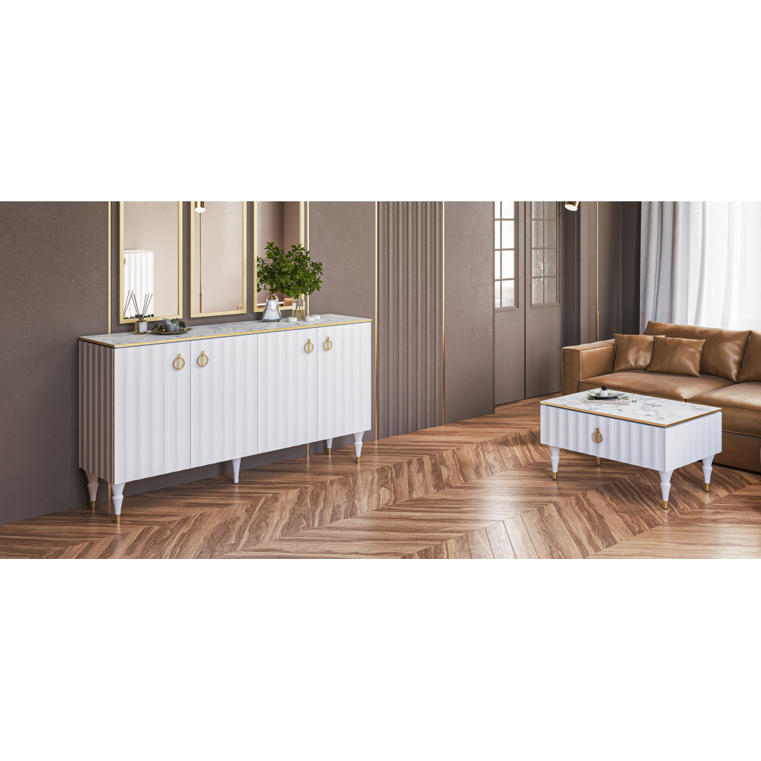 Большая тумба в гостиную МН-043-04 серии Лоренсо от фабрики Мебель-Неман.Петли с доводчиками, рассчитанные на десятки тысяч циклов закрывания, работают плавно и бесшумно.Фасады и боковые панели в коллекции Лоренсо выполнены с инновационным покрытием Serica от итальянских производителей. Это современное, матовое, антибликовое покрытие, приятное на ощупь SOFT-TOUCH. Поверхность защищена от царапин, благодаря специальной обработке. При возникновении микродефекта, его можно легко устранить с помощью термического сглаживания. Технология ANTI-FINGERPRINT гарантирует отсутствие отпечатков пальцев на фасадах.