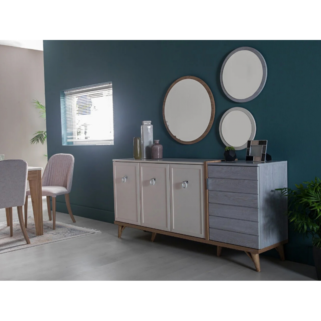 Комплект круглых зеркал на основе из ЛДСП разных цветов дополнит комод Mavenna, также может использоваться по-отдельности. Размер большого зеркала- 70х70 см, размер среднего- 50х50 см, размер маленького зеркала 40х40 см.